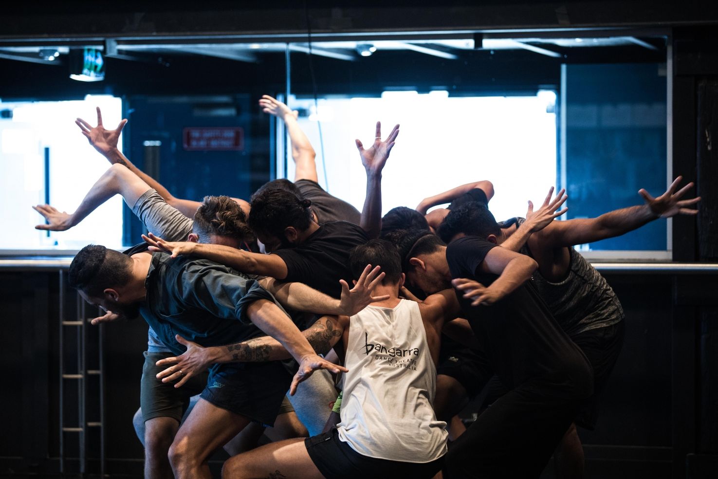 Bangarra male ensemble rehearsing 'Birth Of Bennelong', 30 March 2017