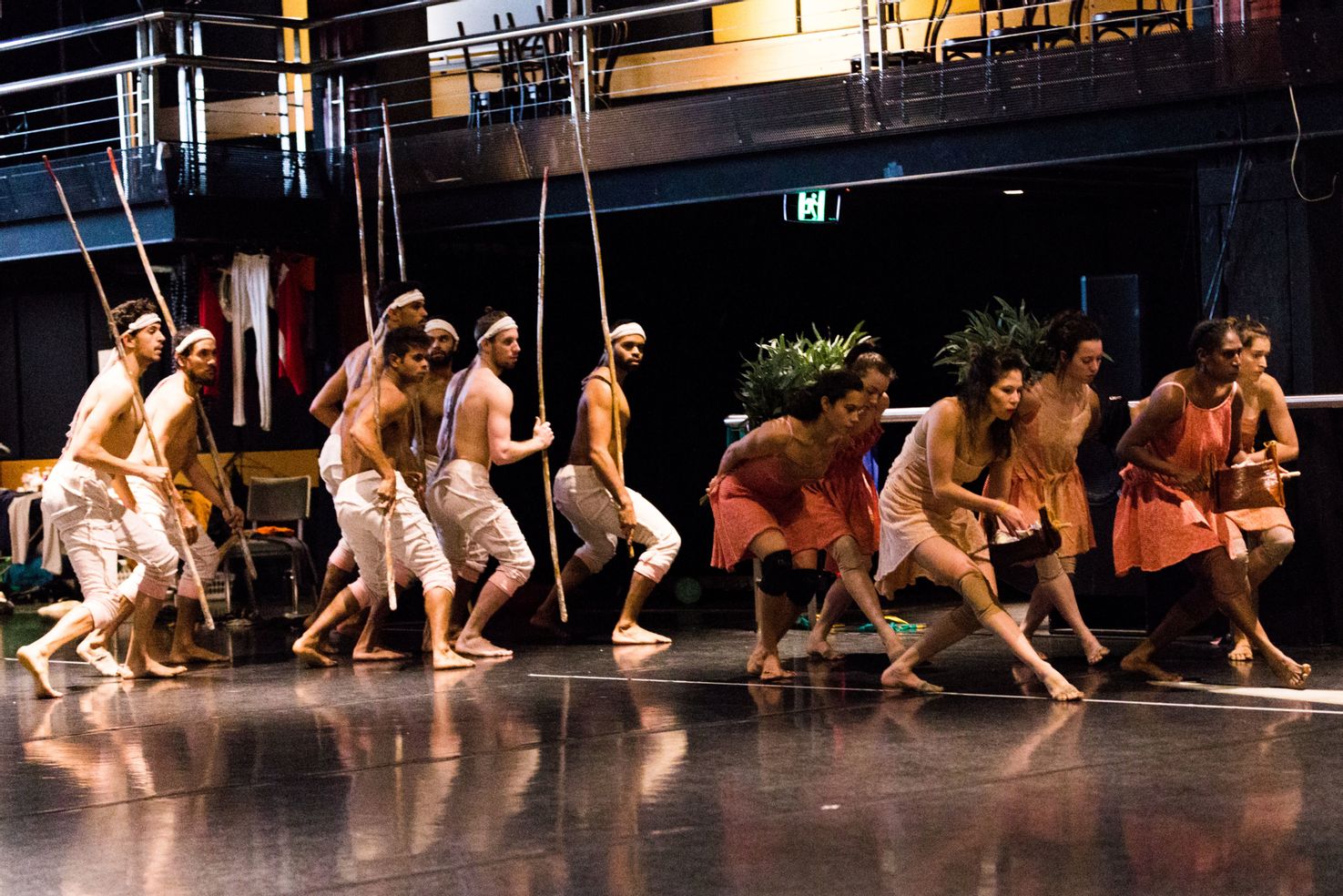 I watched while Stephen worked with the ensemble. Then we worked together on a passage of movement where Dawes first steps On Country, on land. I didn’t enter from side of stage with the cast, I entered from the audience and walked down some big old stairs before stepping on stage.