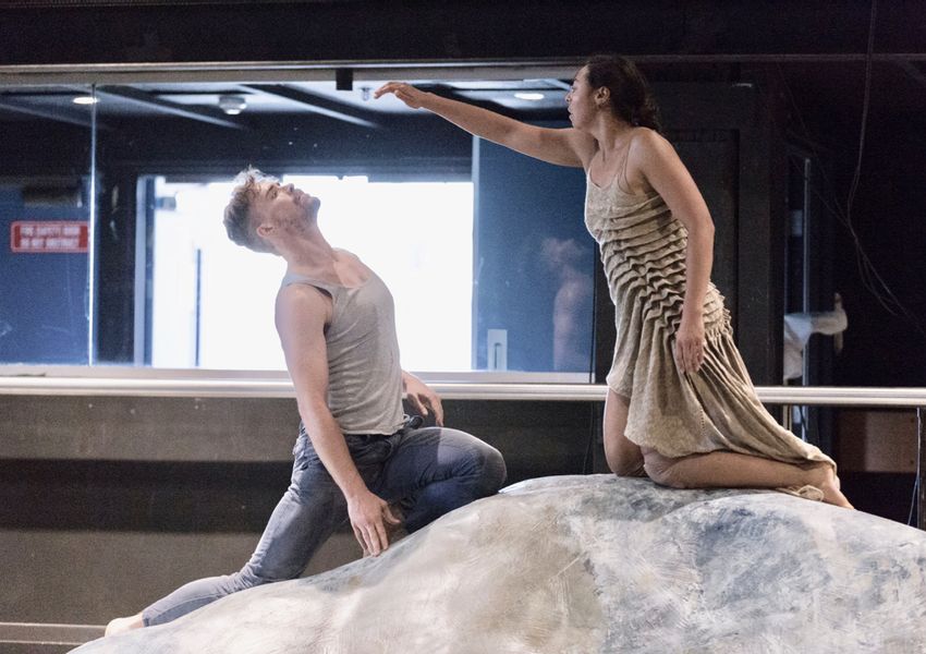I remember being very apprehensive, creating this first block of solo material, when it was just me and Stephen in the studio. I didn’t yet know Stephen’s movement language, his dialogue, but I had that eagerness to try anything. At first, out of respect and not wanting to forge ahead and offer movement, I waited to hear and exchange, and then transcribe it onto my body. This was nerve-wracking, in a good way. I was learning Stephen’s language, how Lieutenant Dawes would have been learning from Patyegarang. By the end of the creative process I was able to have fluent conversations: I knew how to talk to Stephen in the studio through my movement and trusted that it would be right for the piece as we created more material with the ensemble and duets with Jasmin Sheppard. But when you learn a language, you keep your accent. I kept the difference in a really positive way. I have an inherent way in which I move and that always echoed through whatever Dawes did on stage.